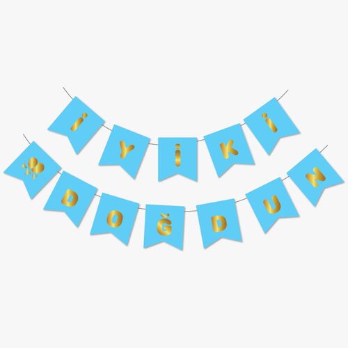 Paket içerisinde 1 set İyi ki doğdun yazısı bulunmaktadır.Ürünümüz 1.sınıf kağıda yaldız baskı..